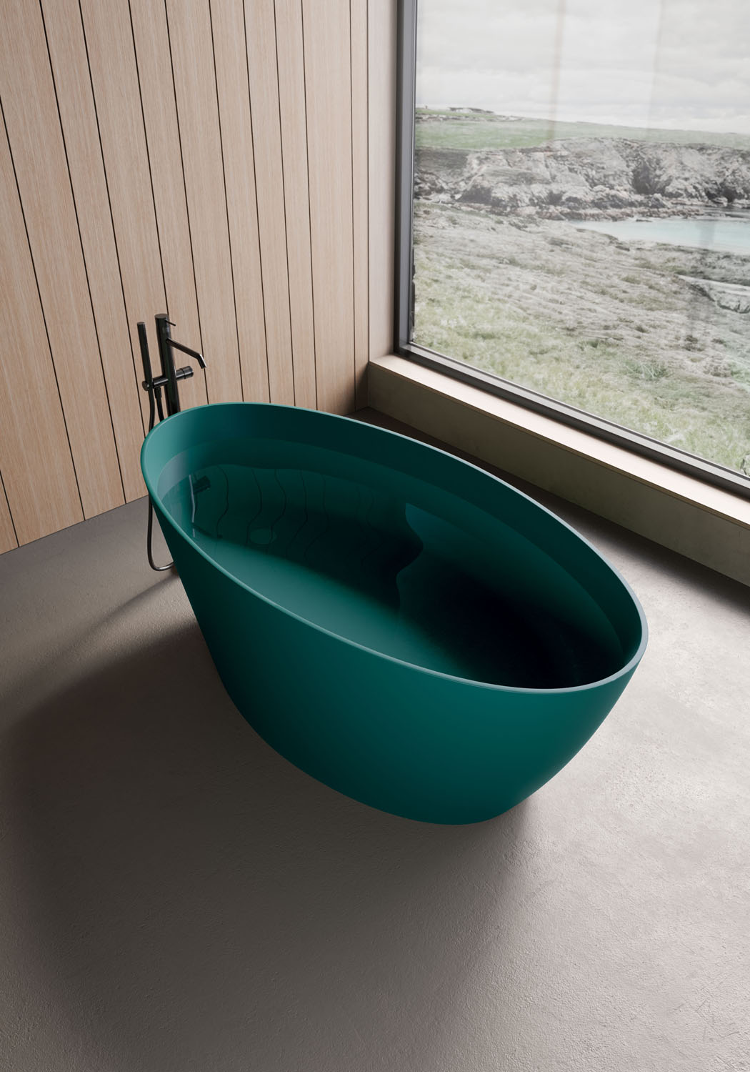 Le design unique de la baignoire à pose libre Lake s’inspire de la nature. La hauteur de cette baignoire significative (60 cm) est imposante et convient parfaitement aux pièces polyvalentes qui remplissent différentes fonctions, comme par exemple la zone nuit. Disponible en M-Solid dans la finition Bianco mat, avec la possibilité d’être colorée (extérieurement seulement ou aussi intérieurement) dans n’importe quelle couleur laquée mate des nuanciers Ideagroup, RAL ou NCS (sans trop plein, version disponible avec bonde de vidage up & down. Finition cache-bonde en teinte). Disponible aussi en M-Lux dans la finition Bianco brillant et finition de la bonde de vidage en Bianco brillant.