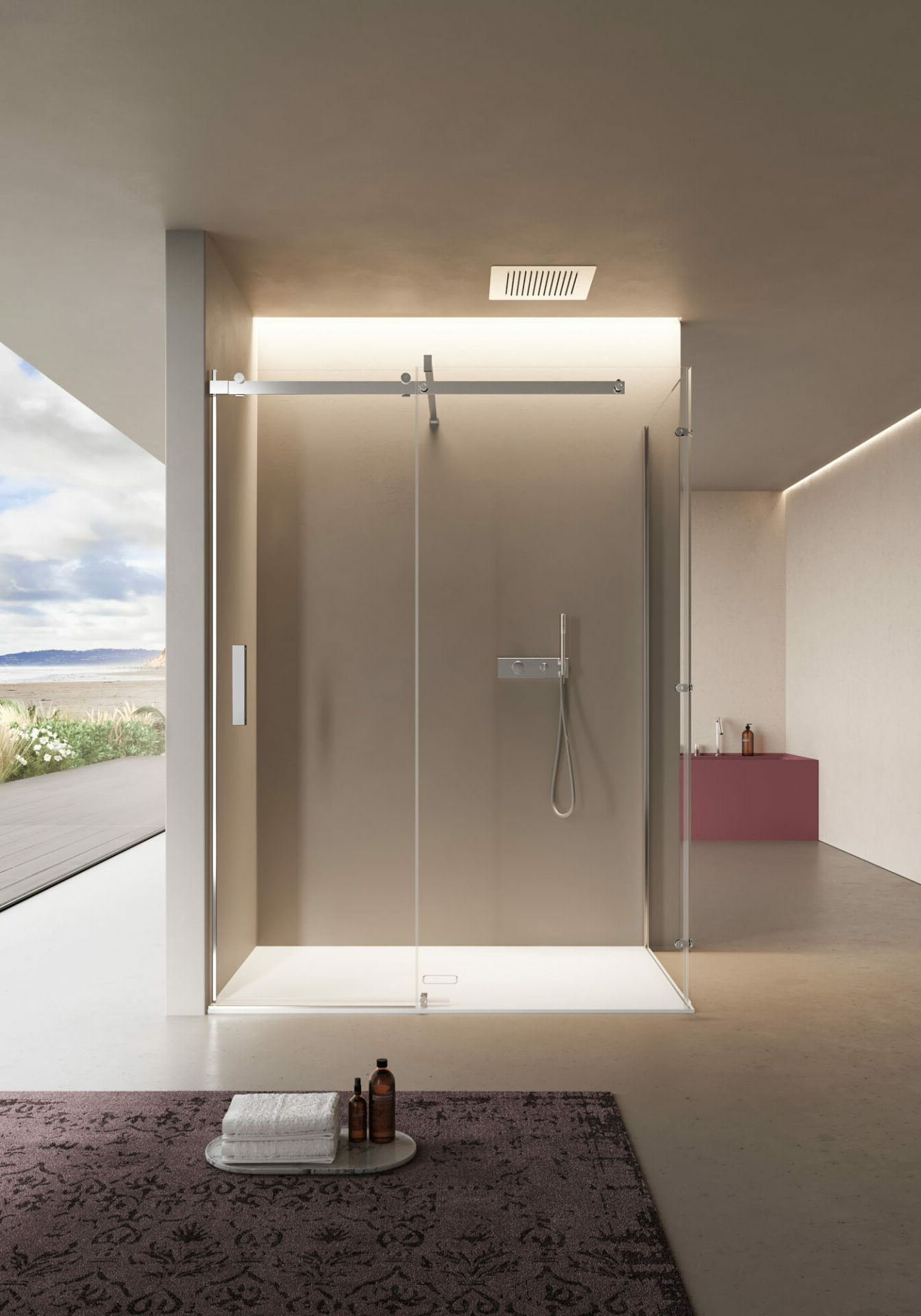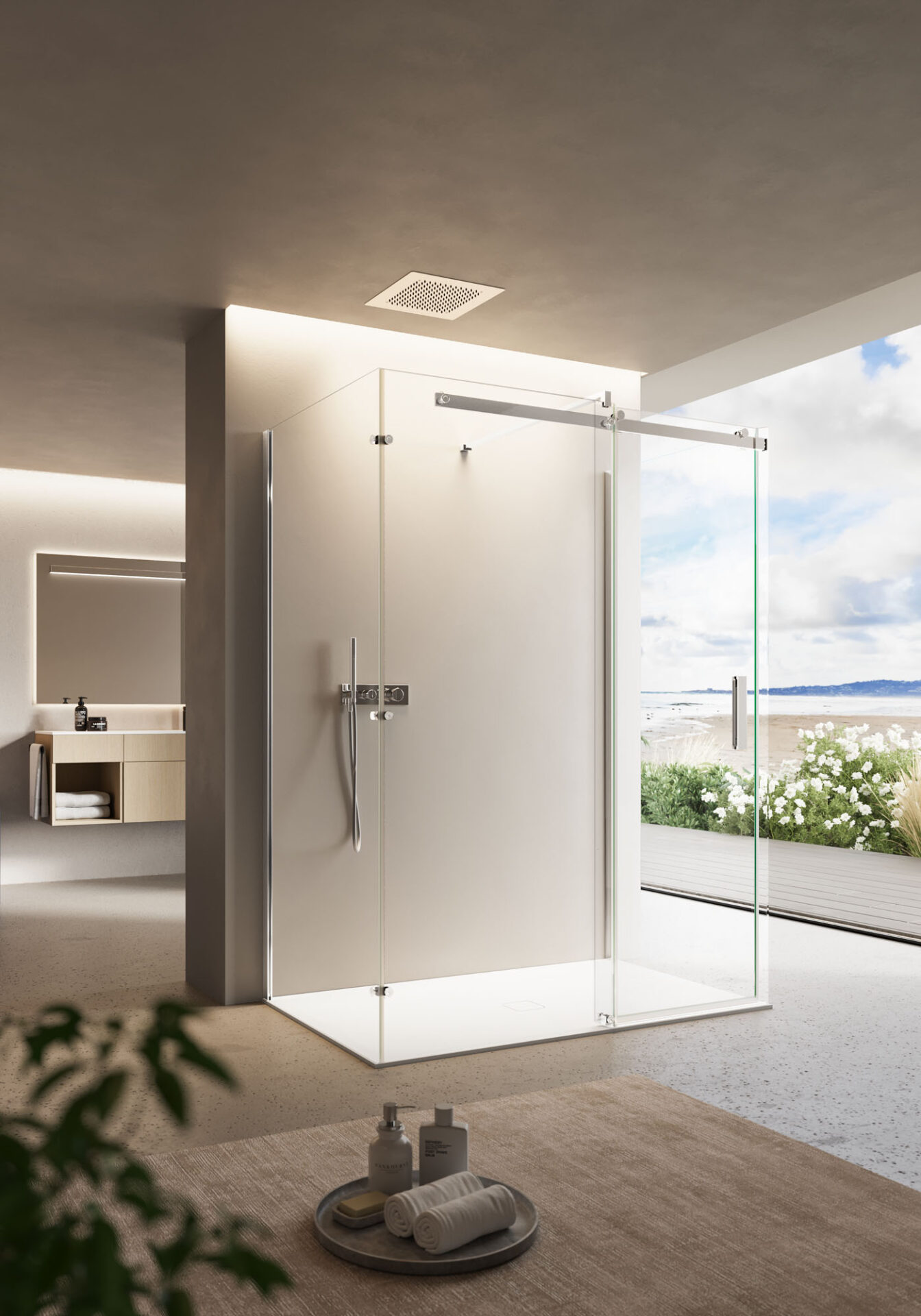 Cabine de douche minimaliste, cabine de douche design. Telle une boîte magique qui s’ouvre dans un jeu parfait, la collection de parois de douche Oops a tous les atouts pour surprendre et séduire. Conçue pour vous offrir une évasion quotidienne de la réalité, elle vous permettra de savourer des moments de détente intense dans votre salle de bains.