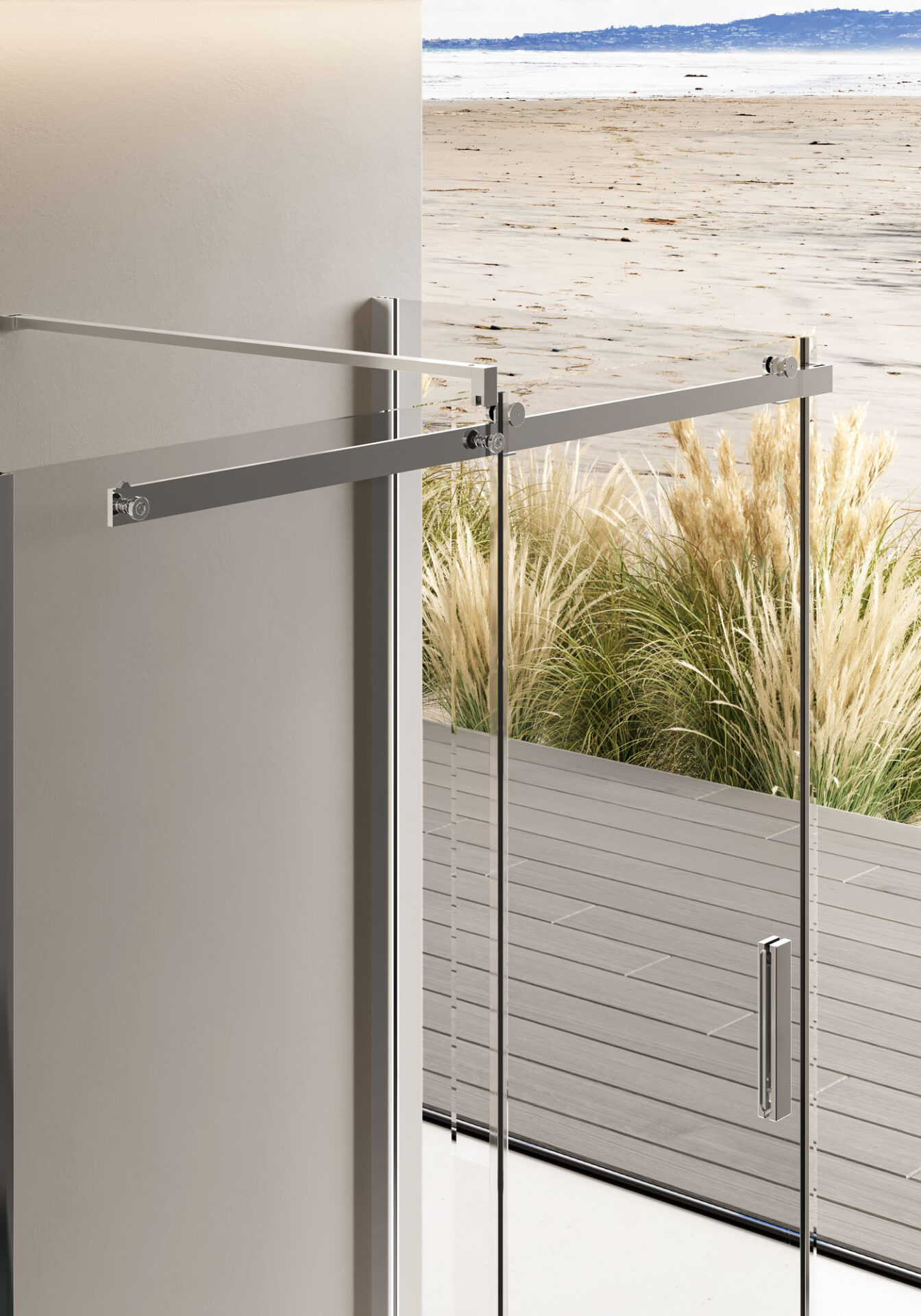 Porte coulissante minimaliste sans cadre inférieur et supérieur.