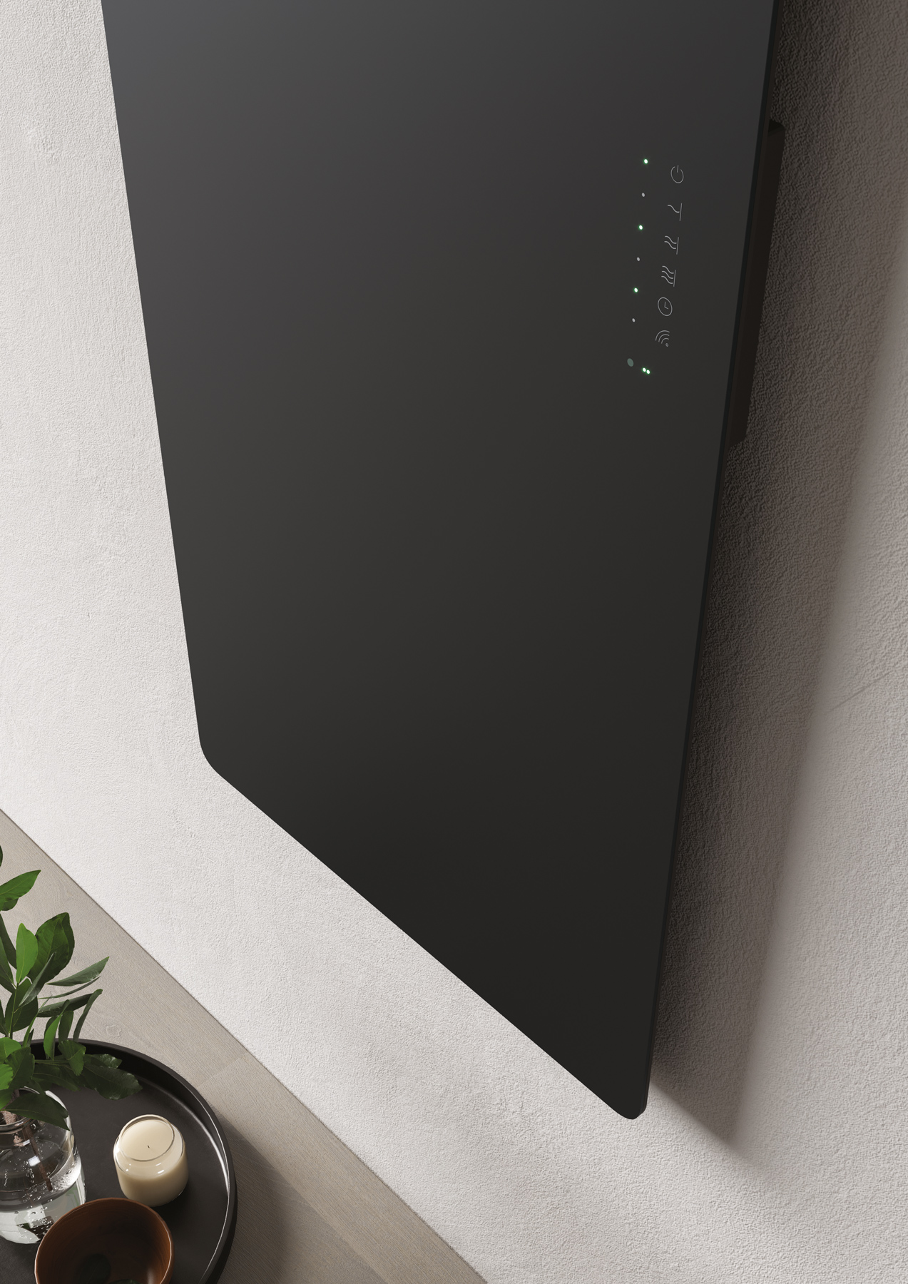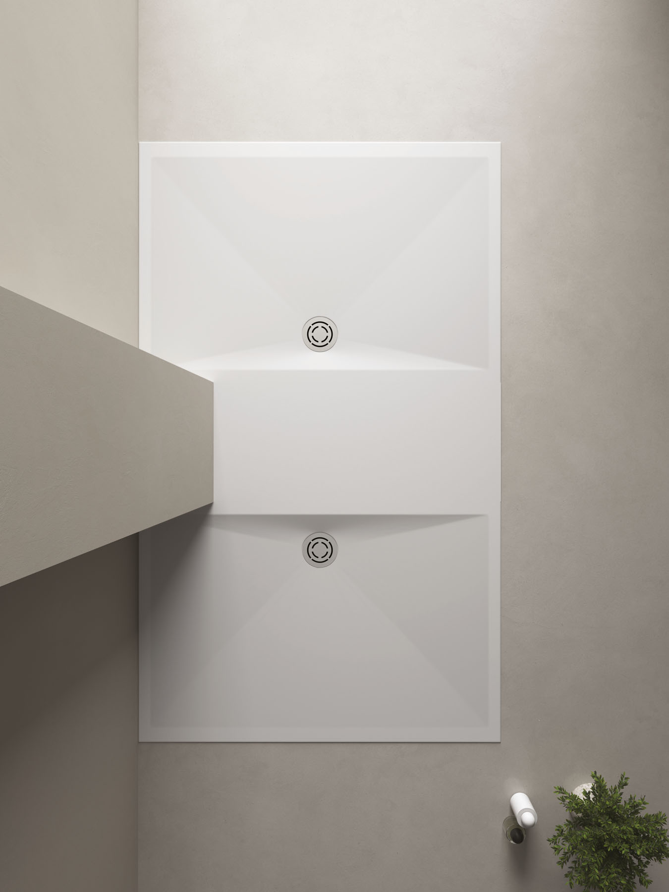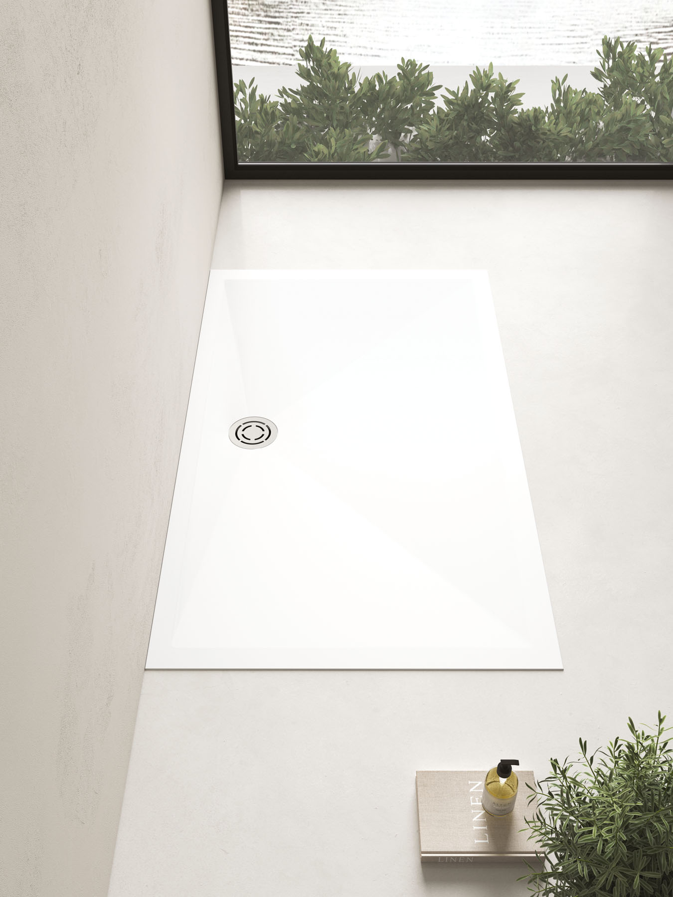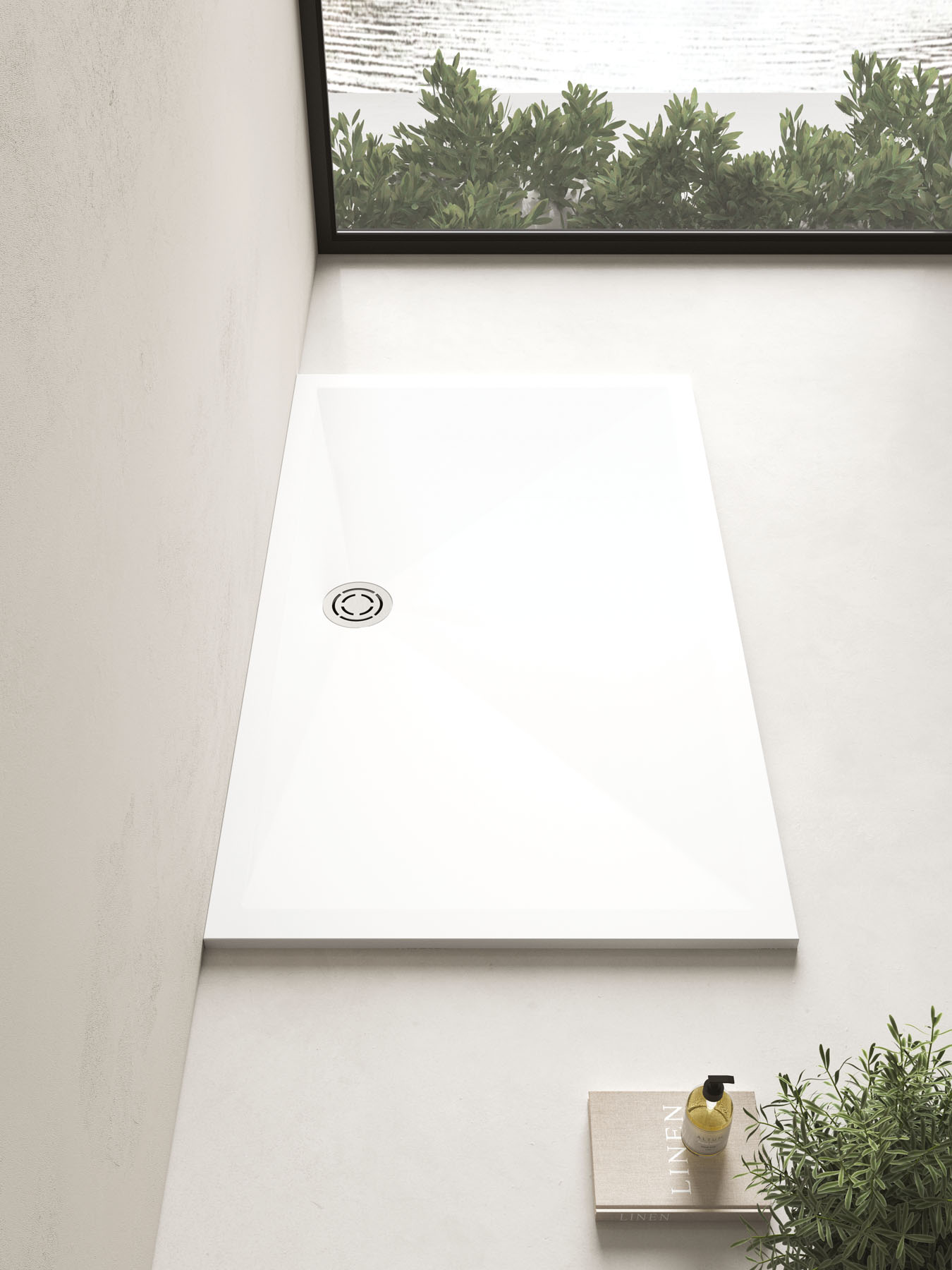 Une approche sur mesure caractérise le nouveau receveur de douche Mohair, disponible en deux matériaux : Aquatek blanc ou Aquagel couleur mate. La bonde de vidage ronde, disponible en acier dans la finition Inox Spazzolato ou dans la finition assortie, est placée sur le côté long. À associer avec le radiateur électrique Helios dans la même texture.